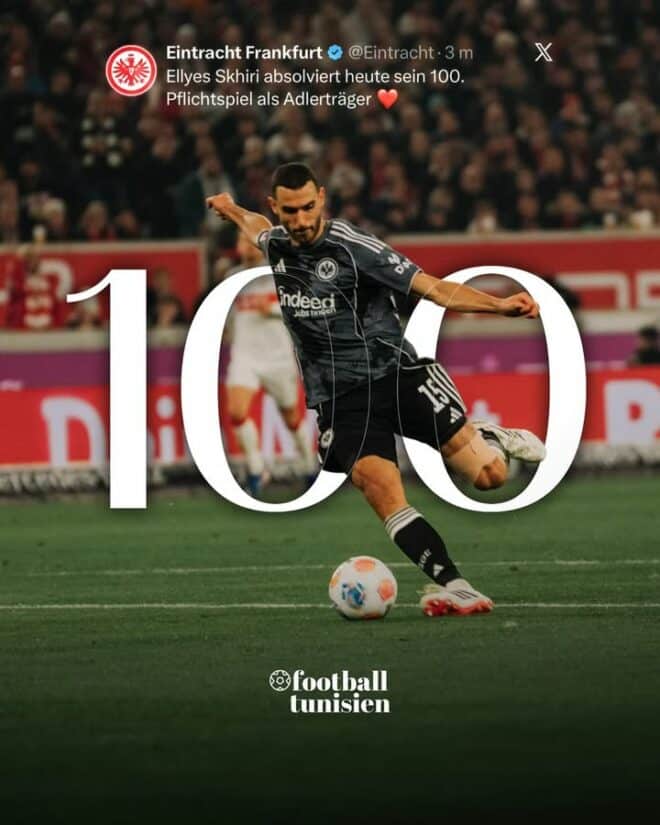 إلياس السخيري participe actuellement à son centième match avec Eintracht Frankfurt. Le joueur tunisien continue de briller sur le terrain.